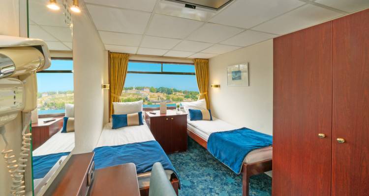 All cabins have ensuite bathroom with shower, towels, hairdryer, TV, telephone (for internal calls only), safe, and air-conditioning.